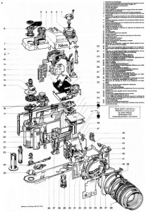 【Nikon】ニコン”F” 一眼レフフィルムカメラの美しい 5 つの透視図と設計図